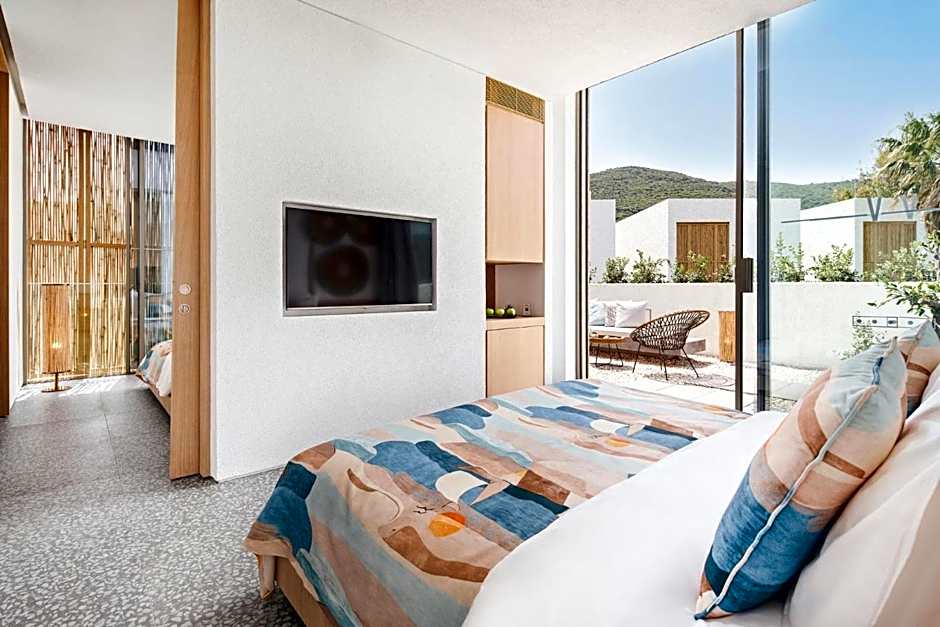 The spacious double room provides air conditioning, a mini-bar, as well as a private bathroom featuring a shower and a bidet. This double room features a tea and coffee maker, TV, pool views, as well as fruit for guests. The unit offers 2 beds.
